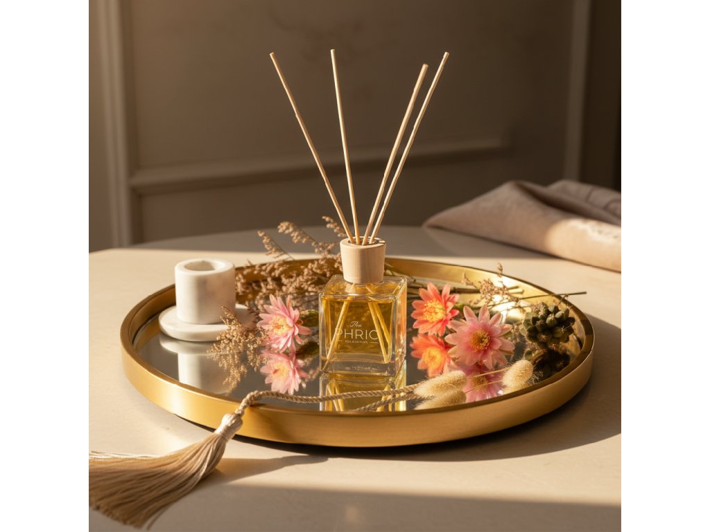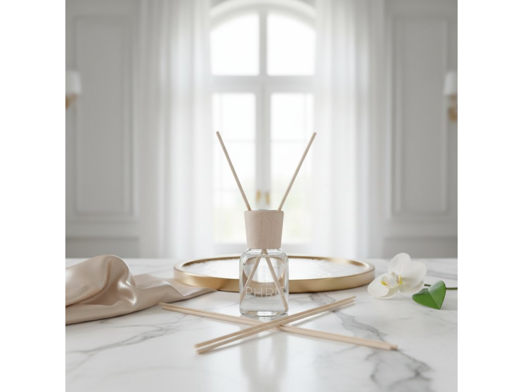 POUŽITÍ: Ponořte všechny tyčinky do lahvičky a otočte je podle požadované intenzity vůně. Vůně se bude šířit do okolního prostoru. Umístěte difuzér mimo proudění vzduchu a zdroje tepla, protože ty způsobují rychlejší odpařování parfému. Vyhněte se umístění lahvičky příliš vysoko, protože vůně stoupá, a pokud je lahvička příliš vysoko, nebudete vůni cítit. Ideální výška je přibližně 80 cm od země.